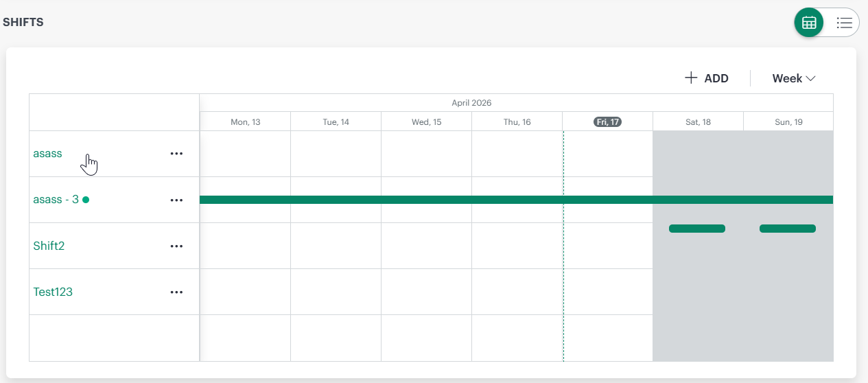 - Use the three‑dot (⋮) action menu next to a shift to view details, create a copy, or remove the shift.
